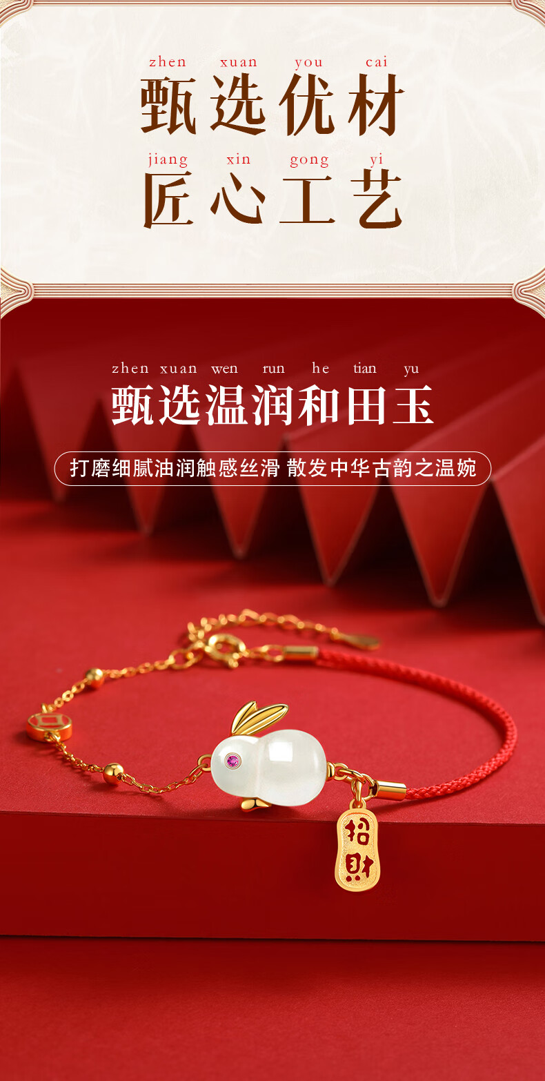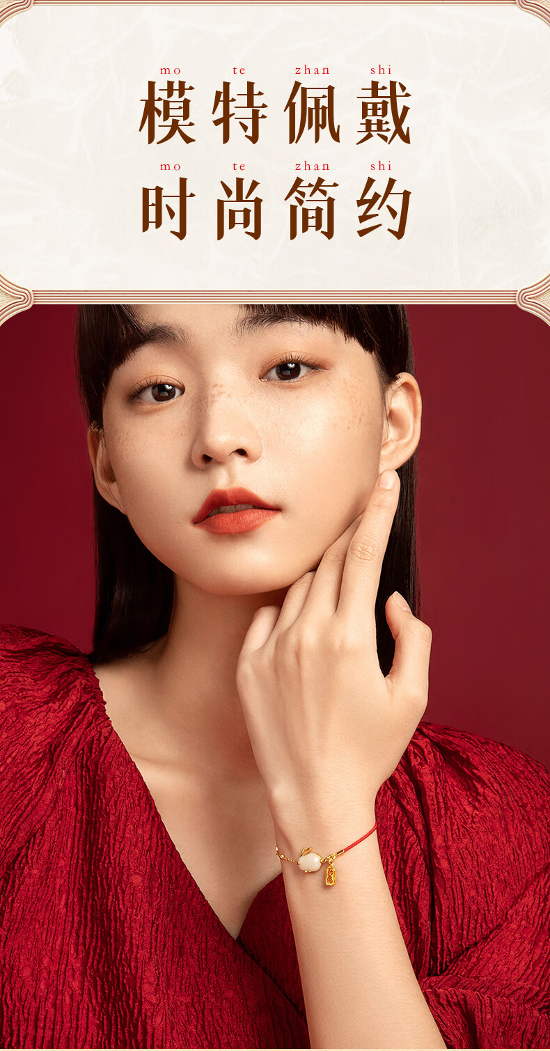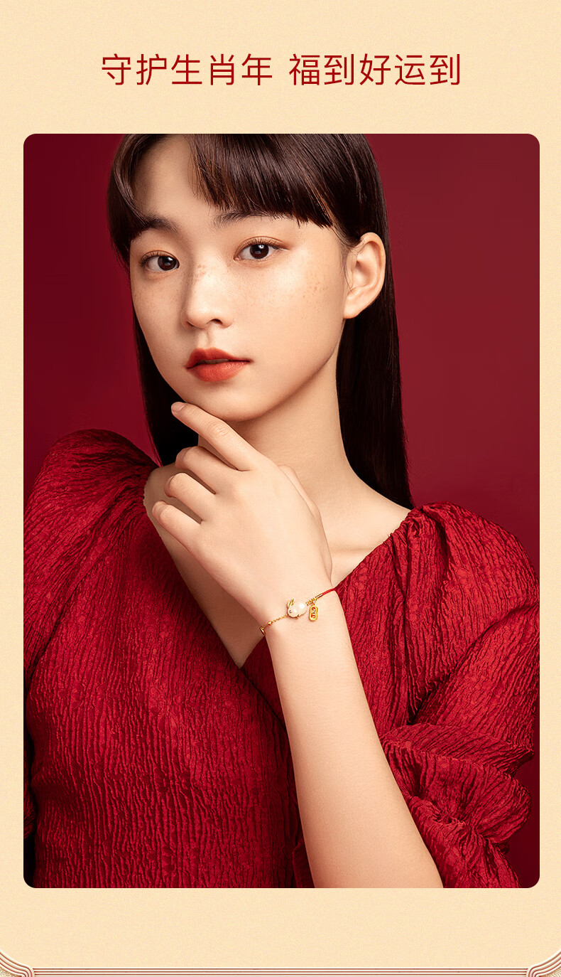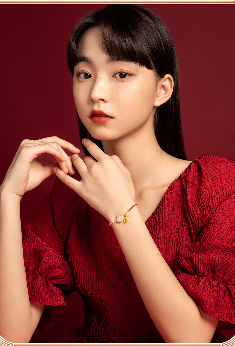 珍尚银【中国黄金】和田玉兔银手链女生日礼物纪念日送女友老婆时尚银饰